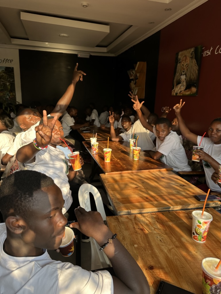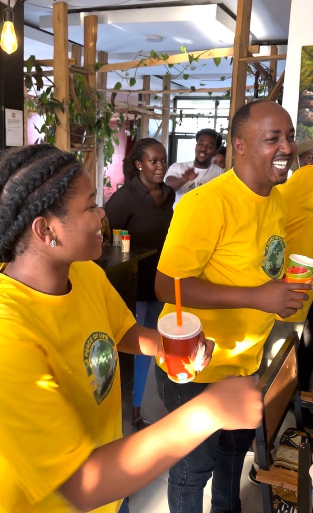 BUT…one of the most inspiring workshops at Peace Camp was on “Entrepreneurship”, with a field trip across the city of Kigali to visit Lion’s Cafe & Bakery. It was started by our very own Prince Mugisha, APOL ex dir (pictured centre photo). Youth enjoyed a treat of refreshing fruit drinks and samosas – all made on site. Prince shared his experience in starting and growing a business, from 3 tables in a small shop to a large cafe & bakery in both Rwanda and Tanzania.