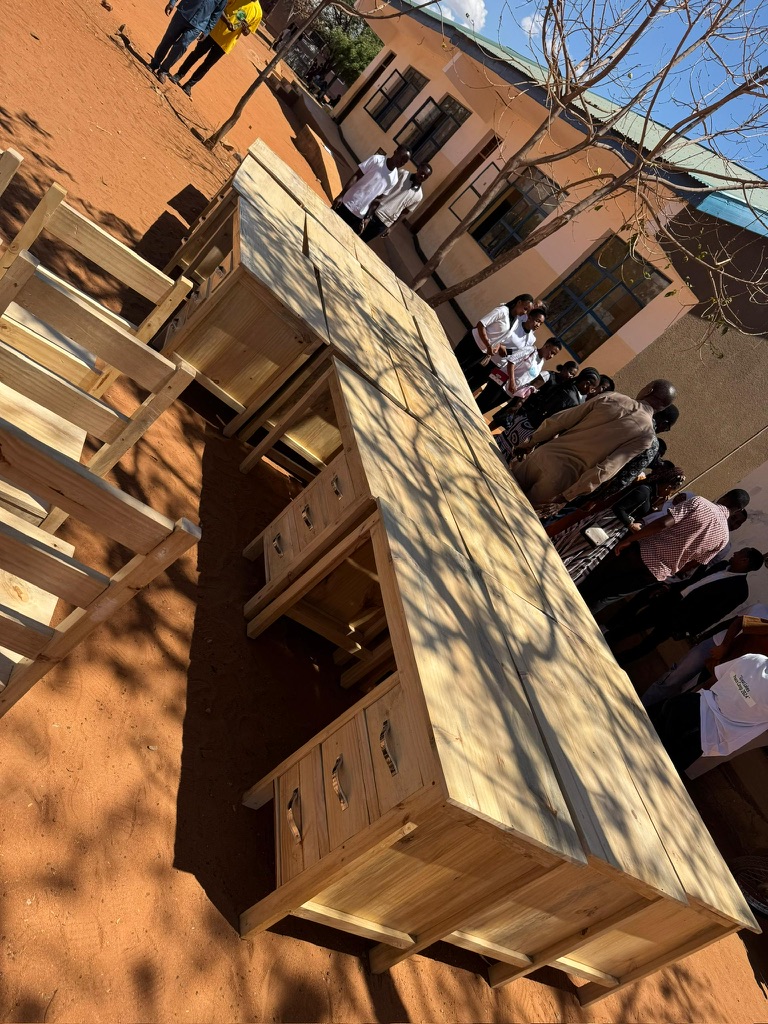 Students enjoyed the impromptu volleyball skills clinic by “visiting coach” Rev Dr Wendell Gibbs (centre pic), and others on the FBC team. In November, the school was surprised with a gift – a desk and chair set for each teacher. Special thanks to FBC & supporters for helping to resource this school in a region impacted by poverty.