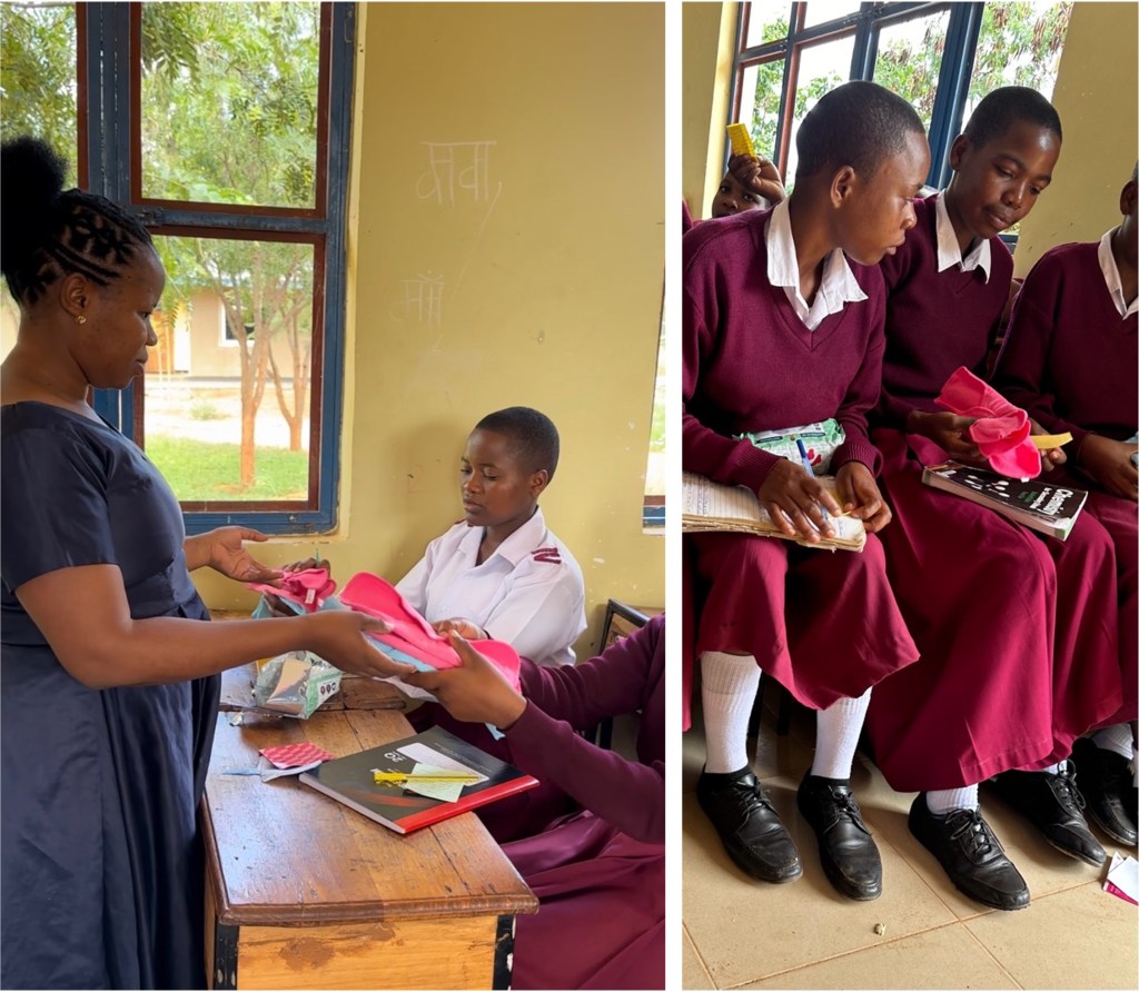 During our April visit, female team members also had the opportunity for a special session with girl students on hygiene, and gave out sets of washable pads. It was a big hit as lack of these products often force girls to miss class/drop out of school. The visit ended with a school-wide assembly to thank APOL and Team TZ for the water tanks and ongoing support.