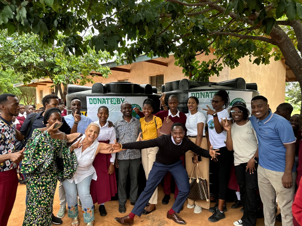 In April, we donated 2 new water tanks to Chihanga Secondary School. Now over 600 students and staff have access to clean water in a hot, dry, rural region. On hand to celebrate the installation were APOL directors, Prince Mugisha, Laurena Zondo and Kerika Olelemoyan (pictured front), with Team Tanzania (TZ).